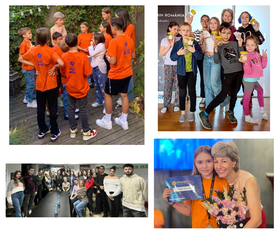 Dacă ești diriginte sau ai un club de activități pentru copii, ori un afterschool și vrei să le oferi copiilor o nouă experiență de dezvoltare combinată cu joacă, mă poți contacta telefonic la: 0748 934 394. Temele sunt diverse (antreprenoriat, networking, discurs în familie, abilități de public speaking, comunicare, încredere în sine, leadership și dezvoltare personală).