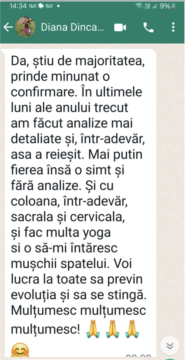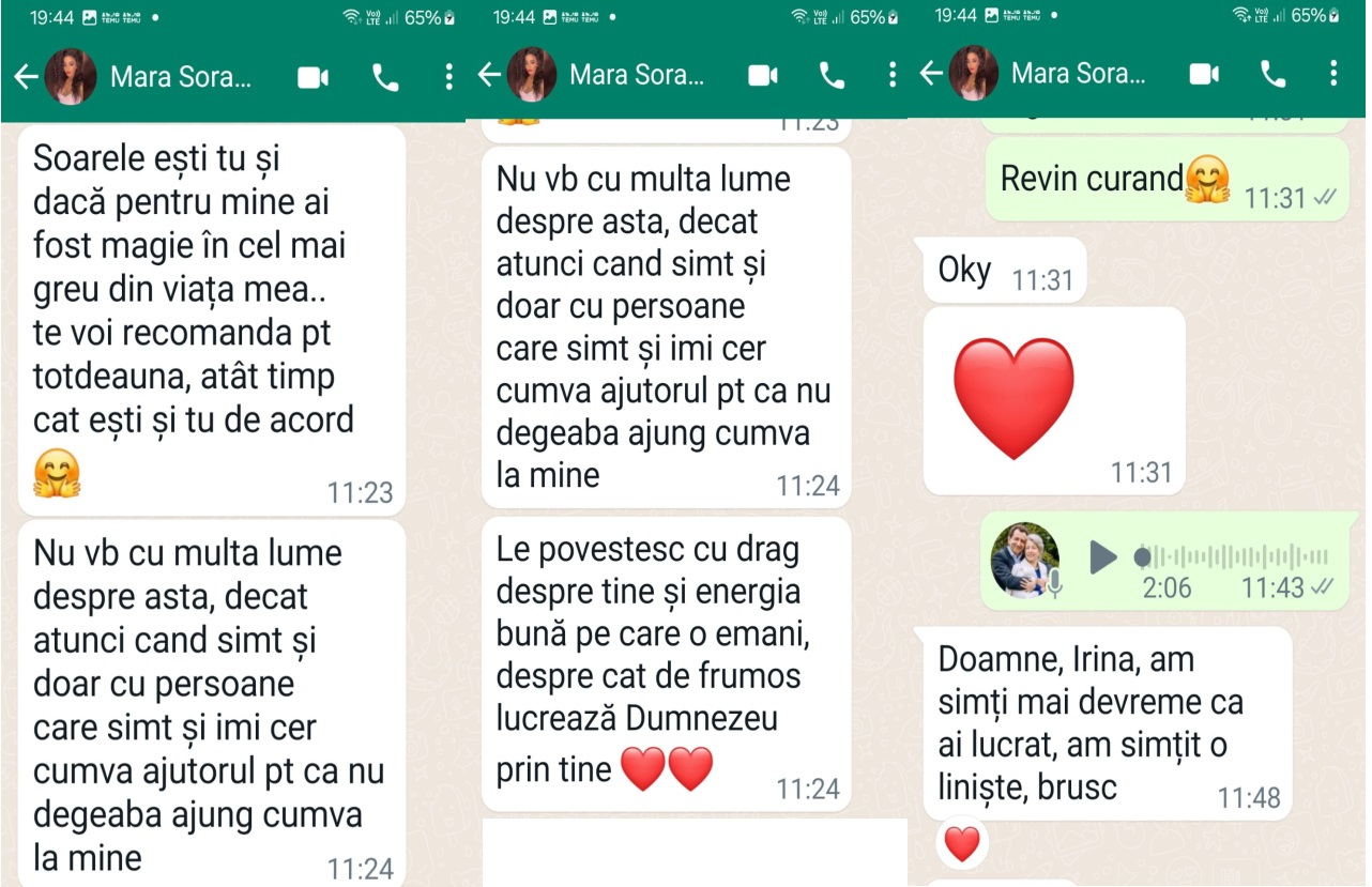 Programarea se face pe WhatsApp și după scanare și/sau terapie trimit un mesaj vocal cu cele constatate și făcute. Dacă este nevoie de discuții suplimentare cu persoana scanată, atunci stabilim de comun acord o discuție telefonică legată de numărul de ședințe și modalitatea de plată.